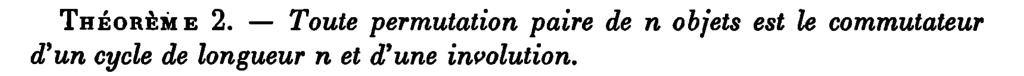$$\sigma = (1, \ldots, \alpha_1)(\alpha_1 +1, \ldots, \alpha_1 + \alpha_2) \cdots (\alpha_1 + \cdots + \alpha_{k-1} +1, \ldots, \alpha).$$The theorem only applies if \(\sigma\) is an even permutation, which we compute to be equivalent to